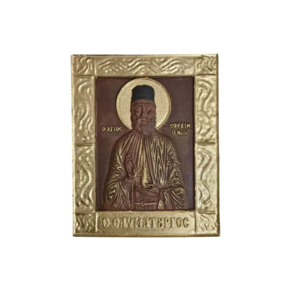Με βαθύ σεβασμό και αγάπη, δημιουργήσαμε αυτή την ξεχωριστή εικόνα του Αγίου Εφραίμ, φιλοτεχνημένη σε πορσελάνη υψηλής ποιότητας με τεχνοτροπία από παλαίωση και χρυσές λεπτομέρειες από φύλλα χρυσού.