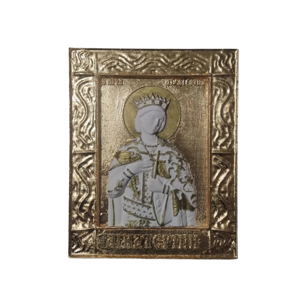Με βαθύ σεβασμό και αγάπη, δημιουργήσαμε αυτή την ξεχωριστή εικόνα της Αγίας Αικατερίνης, φιλοτεχνημένη σε πορσελάνη υψηλής ποιότητας με φύλλα χρυσού.